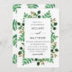 Un faire-part de mariage avec des branches d'aquarelle peintes à la main et des feuilles.