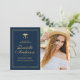 design marine et or avec une photo personnalisée et un cadre géométrique. N'hésitez pas à modifier l'image et les fonctions de texte.