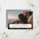 Carte de mariage moderne et chic avec photo pour annoncer la date. Le modèle comprend un espace pour l'une de vos photos de fiançailles avec un cadre classique simple où vous pouvez ajouter la date du mariage ainsi que les noms des mariés. Il y a de la place au verso pour ajouter du texte supplémentaire si nécessaire. Utilisez les outils de conception pour personnaliser les polices, déplacer le texte, changer le type de papier et la couleur de fond pour créer votre propre modèle unique.
