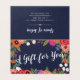 Carte-cadeau bleu marine pour votre salon de coiffure, salon de manucure ou pour un maquilleur, spécialiste des cils ou similaire. La carte-cadeau est en bleu marine avec des fleurs bohèmes en orange, rouge corail et rose chaud. Ajoutez vos informations de contact au verso de la carte-cadeau. À l'intérieur, vous pouvez écrire une clause de non-responsabilité ou des restrictions concernant la carte-cadeau.