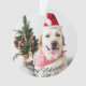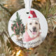 Un style minimaliste de vacances photo ornement d'arbre de Noël avec la typographie classique "mon premier Noël" en noir sur une simple photo de chien Customisé propre pour vous pouvez le personnaliser avec votre chien ou votre photo d'animal de compagnie . et le dos est un cadre floral avec joyeux script de Noël et aussi vous pouvez le personnaliser avec le nom . parfait pour votre prochaine veille de Noël pour décoration et cadeaux de maison