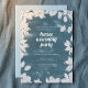 Bienvenue amis et famille dans votre nouvelle maison avec cette élégante Invitation House Party, avec un cadre floral d'aquarelle douce en blanc contre un arrière - plan bleu brumeux. Le design allie sophistication moderne et touche botanique classique, créant une atmosphère chaleureuse et accueillante pour votre célébration. Un grand espace est prévu pour tous les détails de l'événement, les informations RSVP, et votre nouvelle adresse, ce qui permet de partager facilement l'excitation de se déplacer avec des proches. Idéal pour les annonces "Nous avons déménagé" ou "J’ai déménagé", cette carte célèbre votre nouveau chapitre en style.
