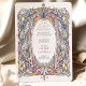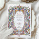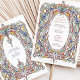 Invitation vos invités dans le style avec ce magnifique faire-part de mariage d'inspiration vintage. Doté d'un cadre fleuri orné avec des détails complexes dans des teintes vibrantes de rouge, d'or, de vert et de bleu, ce design saisit l'élégance de l'art classique. Les éléments botaniques riches, dont les fleurs délicates et les vignes à flot, créent une esthétique intemporelle et romantique. Idéal pour les mariages vintages, formels ou sur le thème du jardin, cette invitation est entièrement personnalisable pour refléter vos détails uniques. Parfait pour les couples à la recherche d'un mélange de raffinement et de charme pour leur journée spéciale.