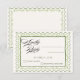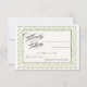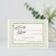 Cette élégante carte RSVP vintage apporte un charme intemporel et une sophistication à votre suite de papeterie de mariage ou de shower de mariage. Conçue avec une bordure verte délicate et un cadre raffiné, elle offre un moyen classique mais élégant pour que vos invités répondent. La typographie nette et la mise en page épurée offrent un espace généreux pour les noms, les détails de présence et les choix de repas, assurant que votre jour spécial soit beau et organisé.