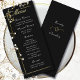 Ce menu noir foncé avec un cadre doré délicat et un script blanc est tout simplement élégant. Parfait pour toute occasion ... tous les champs peuvent être customisés pour votre déjeuner ou dîner. Noms facultatifs en arrière pour mariages et anniversaires