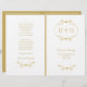 Cadre or et initiales élégante monographie pliée mariage cérémonie et programme de fête avec vos initiales dans un cadre or avec feuilles sur blanc. Ce design de modèle mariage monogrammed chic et personnalisable est parfait pour un mariage classique. Il faut le plier au centre. Choisissez seulement ce type de papier-valeur comme il se plie bien.