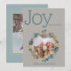 Teintes tendances de feuilles de philodendron bleu poussiéreux et doré entourant un cadre photo rond avec un fond gris champignon. Joie au Monde en police contemporaine (que vous pouvez changer si vous le souhaitez). Facile à personnaliser - le verso est un deuxième emplacement pour une photo favorite, idéal pour que vos amis et votre famille puissent encadrer !