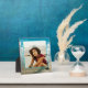Cadre photo debout, un cadeau à personnaliser avec un nom et une date. Tout amoureux de la nature appréciera l'image de ciel bleu et d'eau qui constitue la bordure de la photo. Téléchargez une photo d'orientation horizontale ou verticale où le sujet est centré. La photo est encadrée par une fine ligne bleue clair. Style de police imprimé à la main en bas pour le texte pour inclure un court message, un nom et / ou une date. Conçu pour offrir à son petit ami / petite amie, mais convient à tout le monde.