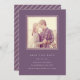 Simple, chic et féminin ; ce design de save the date utilise des textes de couleur prune douce, aubergine, violet et blanc, avec une bordure dorée faussement brillante, pour créer une atmosphère romantique. Une typographie minimaliste assure aux invités que le mariage sera formel, tout en fournissant tous les détails via le site web du mariage.