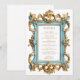 Cadre Rococo Vintage Bleu Menu Mariage Or
