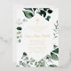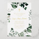 carte d'invitation à la première communion botanique croisée par une feuille de cadre botanique géométrique. Les couleurs et le texte peuvent être personnalisés.