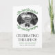 Programme funéraire plié blanc avec des polices noires et vertes élégantes. Sur la couverture, une photo de votre être aimé avec son nom et ses années de vie. A l'intérieur, vous pouvez écrire la nécrologie et le programme. Au verso, vous pouvez ajouter des accusés de réception. Programme de célébration de la vie personnalisé avec une photo ovale de votre bien-aimé encadrée par la verdure.
