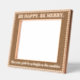 Un cadre en bois intemporel gravé des salutations et du message "Soyez heureux. Soyez Joyeux..... Que votre esprit soit aussi brillant que le soleil" Le design est composé d'un motif en forme de diamant qui ajoute une touche d'élégance festive. Un cadeau parfait pour vos proches ou l'affichage de votre photo de vacances préférée et l'élévation de votre décor saisonnier.