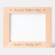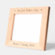 Cadre photo en bois gravé avec le texte "Notre première Fête des pères" flanqué de coeurs et de noms personnalisés ou autre texte ci-dessous.