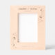 Ce cadre photo gravé au laser est un cadeau parfait pour les jeunes mariés. Le design offre du texte personnalisé pour les noms du couple et leur date de mariage et est accentué de fleur sauvage.