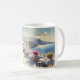 Un cadeau parfait pour les amateurs de voyage et de café. La peinture aquarelle dépeint le charme tranquille et idyllique d'un café en plein air à Santorin. L'espace présente des murs blanchis à la chaux aux accents bleus et des ouvertures voûtées qui encadrent une vue imprenable sur la mer Egée étincelante. Des tables en bois avec chaises en osier sont disséminées dans l'ensemble, chacune agrémentée de vases fleuris de bougainvilliers. Un comptoir en pierre naturelle abrite une cafetière grecque traditionnelle, des viennoiseries et une machine à expresso vintage. Au-dessus, une pergola en bois recouverte de vignes luxuriantes offre une ombre partielle, créant une lumière solaire applaudie sur le sol en carrelage de pierre. Les clients s'assoient tranquillement, sirotant un café et regardant la mer ou s'engageant dans une conversation tranquille. Les couleurs emblématiques de Santorin, blanc et bleu, s'harmonisent parfaitement avec la beauté naturelle du paysage environnant.