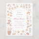 Café bébé budget baby shower invitations. This french bakery-themed baby shower invite features a hand-painted frame of sweet treats, bread, and coffee. The illustrations include croissants, pan au chocolat, cinnamon rolls, pies, cake, cupcakes, baguettes, cherries, bows, coffee beans, and more. Ideal for a baby is brewing, Parisian patisserie, or coffee shop themed baby shower event. Cards reverse to vertical watercolor stripes in a warm brown color. As part of Zazzle's budget selection, this sheet doesn't come in standard card sizes. To get this design on a standard card, you can find it in the collection linked on this page. View the collection linked on this page for matching items or visit our store for more budget baby shower invitations.