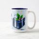 Profitez de votre café matinal pendant la saison des fêtes avec cette Mug de café cadeau de Noël bleu festif. Le design de la tasse à café présente un cadeau de Noël bleu vif orné de baies sèches et de flocons de neige tombant contre un élégant parchemin et arrière - plan feuille avec le dicton "Ma tasse de joie". Autres cadeaux et objets de vacances disponibles avec ce design aussi.