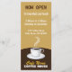 Mug de café © Sunny Mars Designs. Cette carte de café et de café promotionnels personnalisée et entièrement personnalisable présente l'illustration d'une tasse de café noir à vapeur, dans une tasse de café ou de café en porcelaine blanche, sur une table ronde marron, contre un arrière - plan beige. Personnalisez-le en y ajoutant votre propre nom d'entreprise, votre texte et vos informations. Pour la personnaliser, vous devez cliquer sur le bouton "customiser".