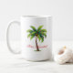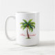 La tasse de café est en blanc avec une empreinte de palmiers de vacances. Un texte dit Feliz Navidad. Customiser cette tasse ou acheter tel quel.