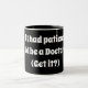 Quand quelqu'un disait à mon père "Ayez un peu de patience", il répondait : "Si j'avais des patients, je serais médecin !" Offrez ce cadeau amusant à un ami, ou ajoutez quelques rires au bureau. Choisissez parmi une variété de tasses, de tasses congélatrices, etc. Super tasse si les gens disent toujours d'avoir de la patience. (C'est une drôle de blague !) Disponible en 11 onces ou 15 onces Dimensions : 11 onces : 3,2 po de diamètre x 3,8 po d'épaisseur : 3,4 po de diamètre x 4,5 po de diamètre Four micro-ondes et lave-vaisselle Sûre, céramique Conforme aux exigences de la FDA en matière de sécurité alimentaire et des boissons Imprimé sur demande à Reno, NV