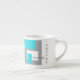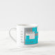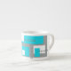 CAFÉ PUISSANCE Turquoise, tasse à café blanc et gris.