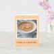 Une carte d'anniversaire ludique qui fera sourire votre destinataire avec une photo amusante d'un café avec un visage heureux dans la mousse. L'arrière - plan est une couleur pêche. Cette carte sera appréciée à la fois par les hommes et les femmes.