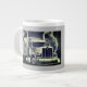 Regarde cette tasse cool ! Il y a une photo d'un camion propulsé par AI dessus et les mots 'transport de marchandises' écrits à côté. Il s'agit de montrer comment les choses se déplacent. Parfait pour tous ceux qui aiment les camions et les technologies modernes.