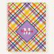 Personnalisez ce cahier à carreaux coloré avec un nom et un monogramme pour un cadeau de rentrée élégant. Accents violets et rouges. Choisissez un style de papier et une couleur de reliure spirale pour le personnaliser encore plus, Voir d'autres articles coordonnés dans cette collection de design sur KidsUnique sur Zazzle.