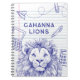 Des gribouillages liés à l'école et du papier de cahier largement réglé remplissent l'arrière-plan derrière ce mignon mascotte de lion. Personnalisez le cahier de rentrée scolaire de votre fils ou de votre fille en le personnalisant avec leur nom, le nom de leur école ou tout autre texte personnalisé de votre choix. Allez les Lions !
