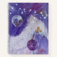 Des lunes et des étoiles flottent au-dessus d'une montagne enneigée dans ce monde abstrait, faisant de ce cahier un endroit parfait pour réfléchir.