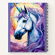 Une jolie licorne avec une crinière violette sur un fond cosmique arc-en-ciel. Créé numériquement dans un style aquarelle. Design parfait pour les enfants et les adultes sur de nombreux produits tendance ! Personnalisez la couleur de fond ou le texte !