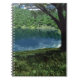 Un endroit calme pour se reposer, sous un arbre sur la rive herbeuse d'un lac bleu profond, regardant les reflets des nuages et des arbres dans l'eau ondoyante. Une scène 3D créée dans Vue.