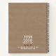 Ce cahier de croquis d'entreprise rustique mais professionnel présente un fond en papier kraft d'esthétique simple et naturelle avec une typographie blanche à texture rugueuse. Remplacez simplement votre logo et mettez à jour vos informations commerciales. Cela ferait un excellent cadeau pour les employés et un accessoire de bureau.