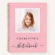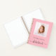 Un fond rose féminin. Personnalisez et ajoutez votre propre photo. Ajoutez un nom et un titre. Le titre est écrit avec un style de lettrage manuscrit moderne avec des fioritures. Lettres de couleur noire. Un cahier pour esquisser vos enfants, pour votre bureau à la maison.