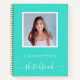 Un fond de couleur turquoise. Personnalisez et ajoutez votre propre photo. Ajoutez un nom et un titre. Le titre est écrit avec un style de lettrage manuscrit moderne avec des fioritures. Lettres de couleur blanche. Un cahier pour esquisser vos enfants, pour votre bureau à la maison.