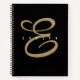 Ce design met en valeur un style chic et sophistiqué avec un fond noir, une lettre de script doré gras comme point focal, et un texte blanc sans-serif propre écarté élégamment sur le centre, mélangeant des éléments modernes et classiques de manière transparente.
