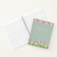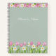 Un joli cahier à spirales présentant de douces tulipes roses et des jonquilles blanches joyeuses disposées dans des bordures florales élégantes. Le fond vert sauge doux met en valeur les délicates fleurs aquarelles tandis que le nom personnalisable ajoute une touche personnelle. Parfait pour le journalisme, le travail ou l'écriture quotidienne, et un beau cadeau pour les enseignants, les étudiants, les collègues ou toute personne qui aime les fleurs fraîches du printemps.