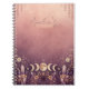 Cahier céleste au dégradé de coucher de soleil coloré présentant des phases lunaires et des accents de cristal. Avec des tons chauds de pêche, de corail et de lavande, ce design rêveur est parfait pour l'écriture créative et la tenue d'un journal.