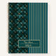 Cahier sarcelle vert or pailleté avec des lignes de motif. Le cahier peut être personnalisé avec votre choix de police et de couleur de police. Le cahier présente une police manuscrite qui est parfaite pour un journal ou un cahier. La conception girly tendance peut être personnalisée en cliquant sur le bouton "Personnaliser".