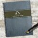 Un cahier moderne au design grunge en gris bleu avec des bandes marron. Les bandes sont facultatives, vous pouvez les retirer si vous n'en avez pas besoin. Un excellent cadeau pour quelqu'un qui démarre une nouvelle entreprise ou une formation, ou comme cadeau d'anniversaire ou de Fête des Pères.