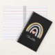 Un joli cahier personnalisé enfant aquarelle boho arc-en-ciel avec un arc-en-ciel de moutarde rose et de bleu avec un cœur rose au milieu sur un fond de bois de grange blanchi rustique.