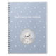 Cahier personnalisé thème hiver gris-bleu avec étoiles blanches et un ours polaire mignon. Personnalisez facilement le texte.