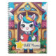 Ajoutez de la magie aux journées scolaires avec ce cahier de notes licorne éditable ! Avec une licorne mignonne en uniforme scolaire tenant des livres devant un bâtiment scolaire coloré, ce cahier personnalisé vous permet d'ajouter le nom de votre enfant sur la couverture pour un effet unique. Parfait pour les enfants qui aiment les licornes et les fournitures scolaires colorées.