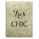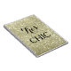 "Très Chic" sur un fond illustré pailleté et doré accentue ce cahier.