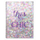 "Très chic" sur un fond illustré de photo scintillante accentue ce cahier.
