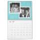 Ajoutez vos photos préférées pour créer un calendrier photographique moderne. Chaque mois comprend la place pour une ou deux photos. Il y a aussi un espace à l'avant et à l'arrière pour customiser avec plus de photos. Au total, dix-sept espaces photo sont disponibles.