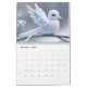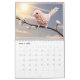Illustration fantaisiste d'un oiseau perché sur une branche, entouré de quatre saisons distinctes. Le plumage de l'oiseau passe du bleu et du blanc glacé de l'hiver aux fleurs vibrantes du printemps, aux jaunes chauds de l'été et aux feuilles de l'automne, mettant en valeur la beauté cyclique des saisons. Le calendrier est orné de fleurs et de feuilles qui correspondent à chaque saison, créant un sentiment d'harmonie et d'équilibre.