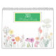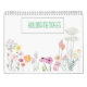 Calendrier aquarelle. Rose, pêche, bleu pâle et vert sur un arrière - plan blanc. Nom de famille et année. Chaque mois a une photo de remplacement.