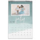 Personnalisez ce beau calendrier avec 12 photos, une pour chaque mois, contre un dégradé d'aquarelle pur arrière - plan dans des tons apaisants de vert jade. Le mois apparaît sur chaque page en lettres manuscrites blanches. Personnalisez la couverture avec l'année et votre texte personnalisé, sous une image composite des 12 photos.